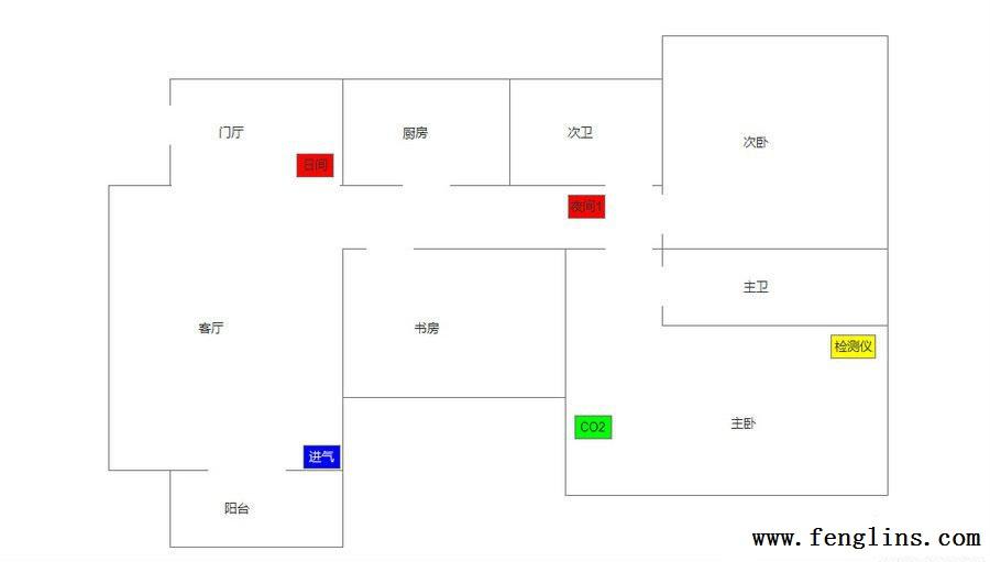 檢測位置 客廳距離空氣凈化新風機進風口最遠的窗戶邊 下面的FFU沒開機