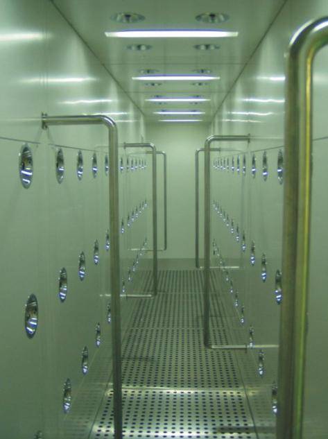 隧道風淋室系列產品主要用途是凈化進入潔凈室的人員或物料,盡可能減少人員或物料進入潔凈室帶入塵埃造成對潔凈環境的污染。一般應用于人數要求比較多,有一定放置空間的潔凈車間入口處。